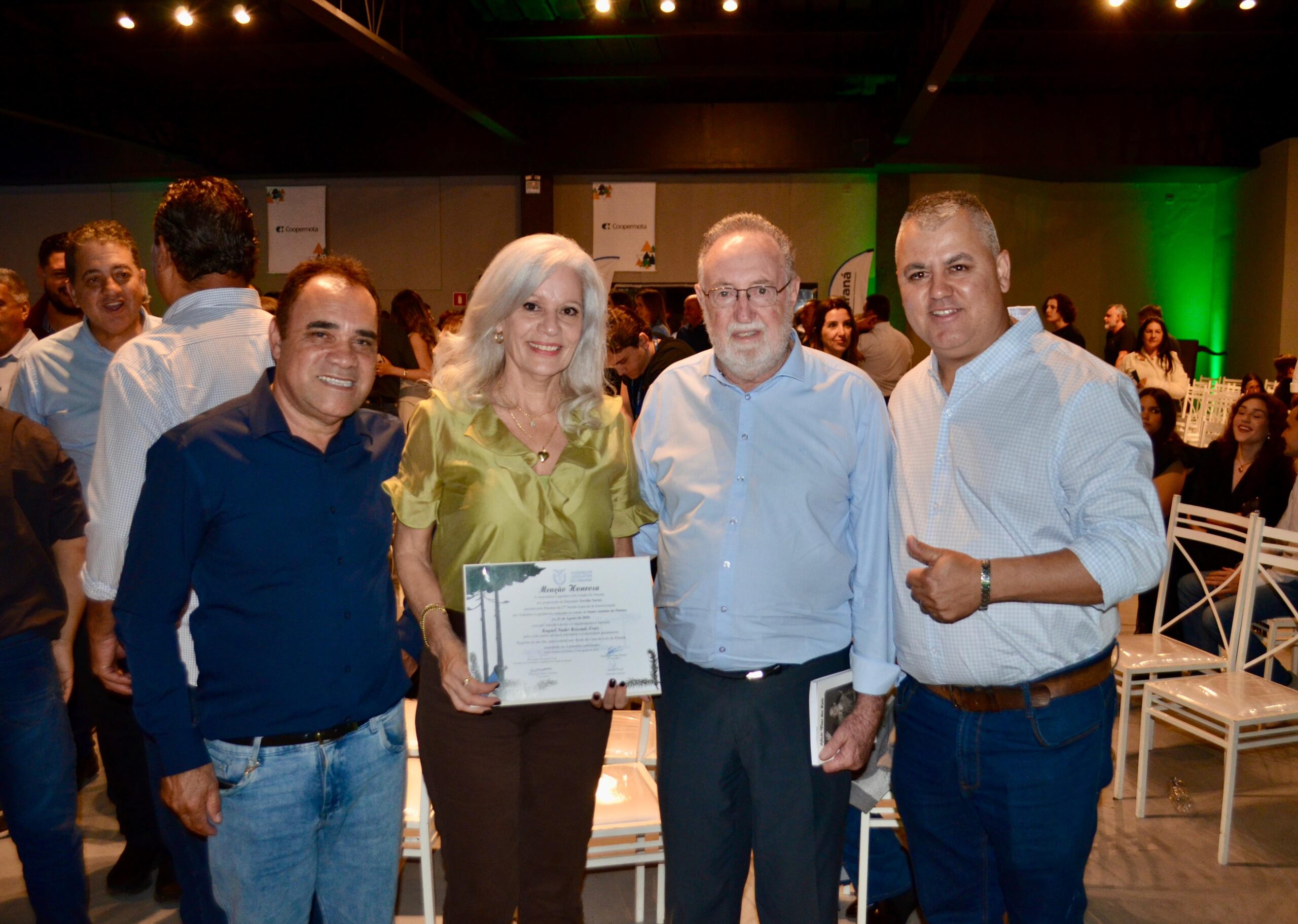 O deputado estadual Tercilio Turini homenageou nove pessoas que se destacam no Norte Pioneiro pela contribuição à comunidade em suas atividades profissionais. Todos receberam diploma de Menção Honrosa da Assembleia Legislativa do Paraná na edição da Assembleia Itinerante, realizada na feira agropecuária Efapi, em Santo Antonio da Platina.