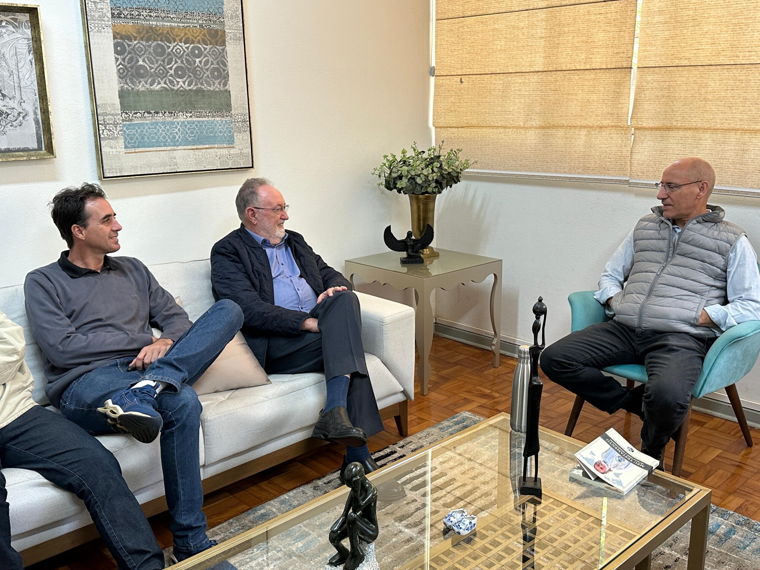 Padre Manuel Joaquim agradeceu pelo encontro, falou sobre as ações na reitoria do Seminário Paulo VI e sua dedicação a escrever artigos e livros, como o mais recente “Sacerdócio e Envelhecimento”, lançado em conjunto com o padre Humberto de Carvalho. A publicação aborda a relação dos padres com a velhice, os cuidados a quem esteve por toda a vida a serviço de Deus, da Igreja e das pessoas. Na prateleira da sala, Manuel Joaquim destaca a frase que o motiva: “A ameaça do mais forte sempre me faz passar para o lado mais fraco” – do escritor e político francês François Chateaubriand (1768 – 1848).