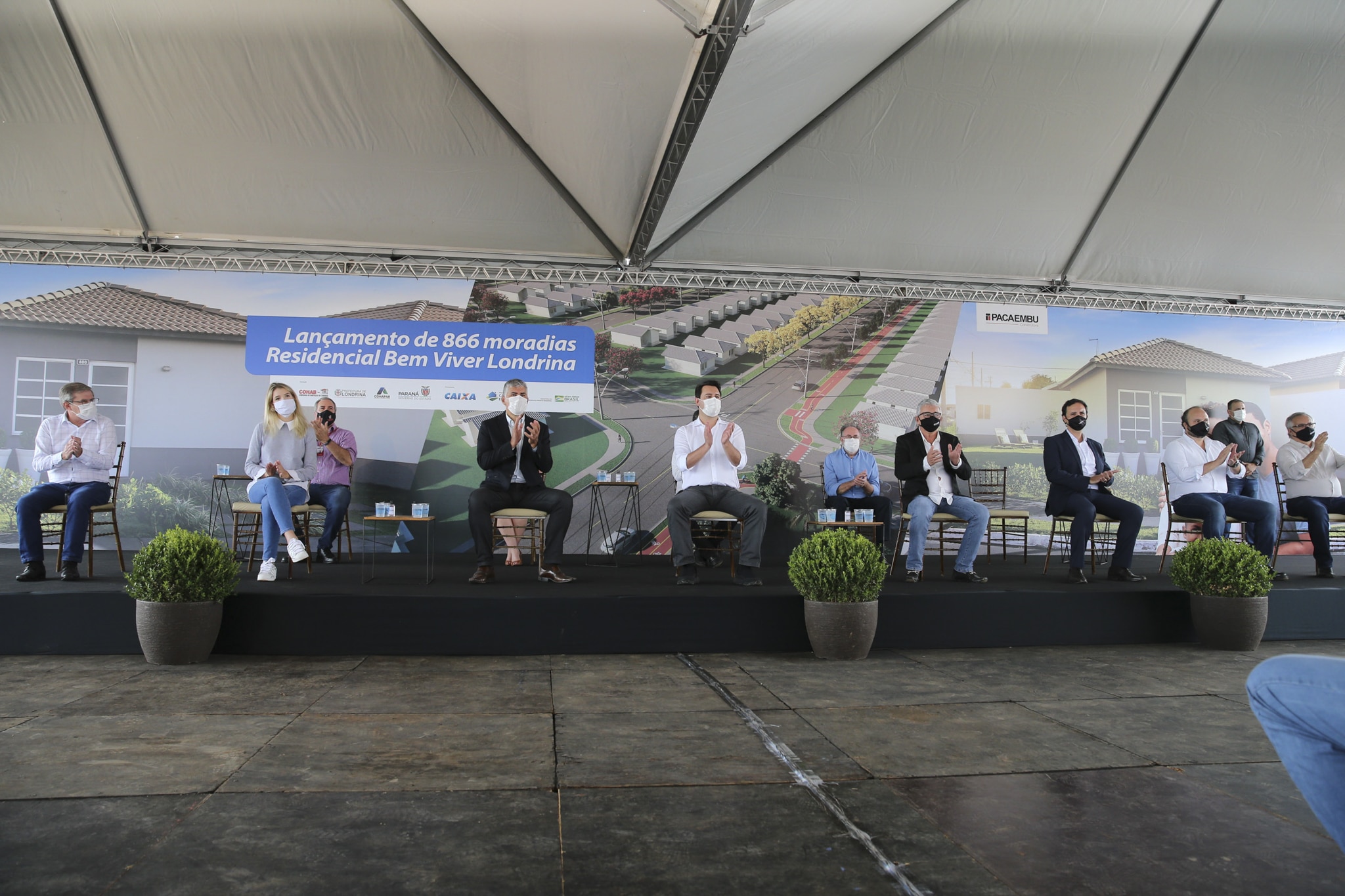 Londrina vai contar com mais 886 moradias que serão construídas numa parceria do Governo do Paraná, Caixa Econômica Federal, Cohapar, Cohab-LD e Construtora Pacaembu. O empreendimento na região Norte da cidade foi lançado hoje de manhã com presença do governador Ratinho Junior, representantes das instituições envolvidas no projeto e convidados.